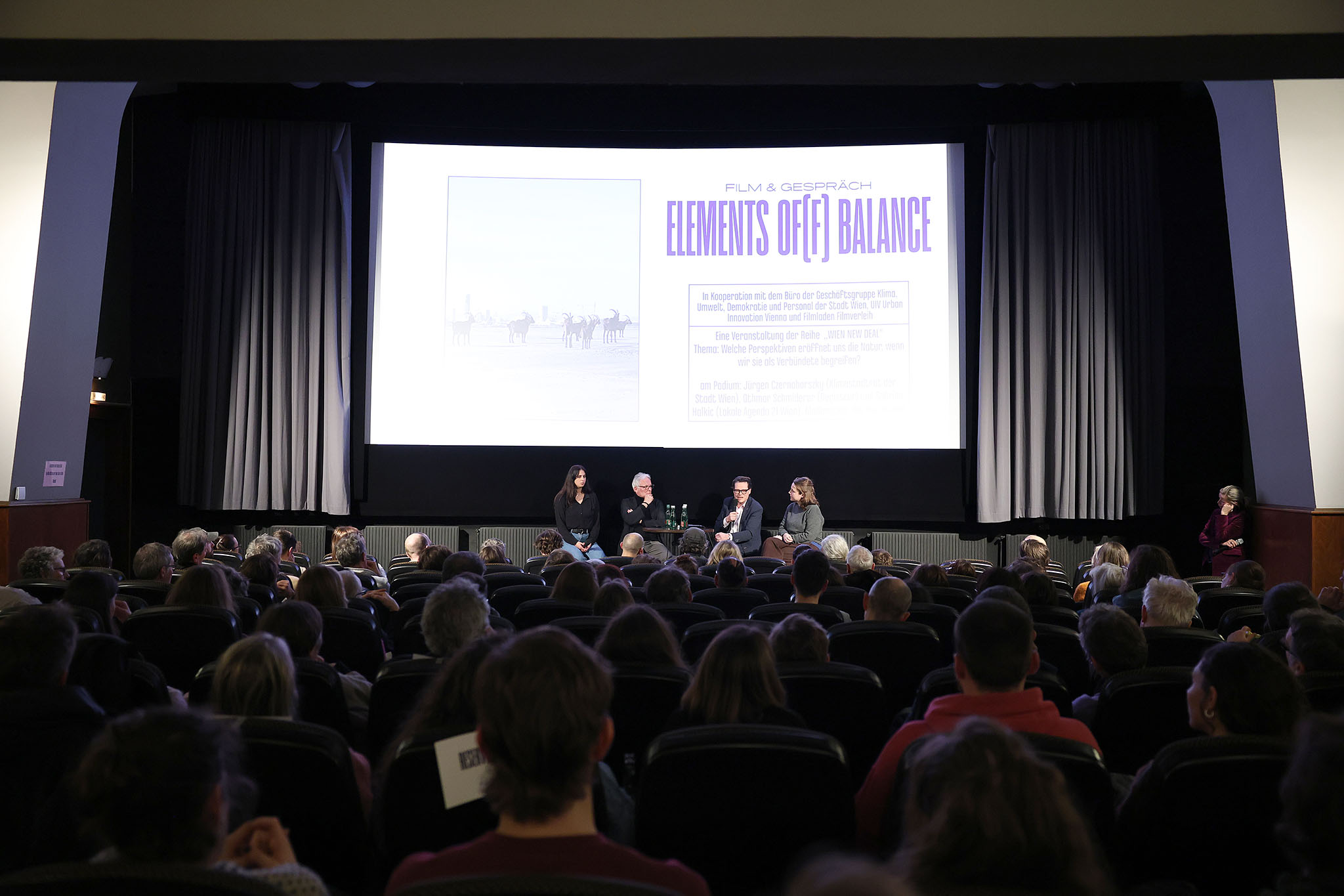 Im Anschluss an die Filmvorführung diskutierten Klimastadtrat Jürgen Czernohorszky, Regisseur Othmar Schmiderer und Sabrina Halkic (Lokale Agenda 21 Wien) mit Moderatorin Naz Kücüktekin.