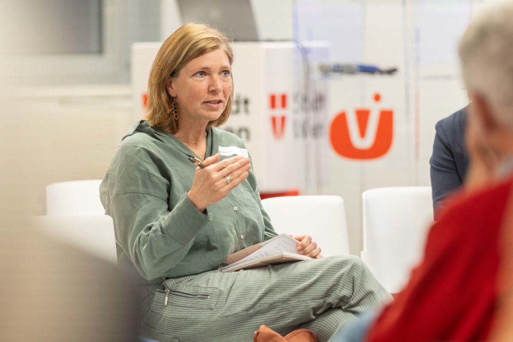 Im anschließenden Praxisdialog berichten die Teilnehmenden im Dialog mit Ingrid Brodnig aus unterschiedlichen Perspektiven über den Umgang, Herausforderungen und Strategien mit Fake News.